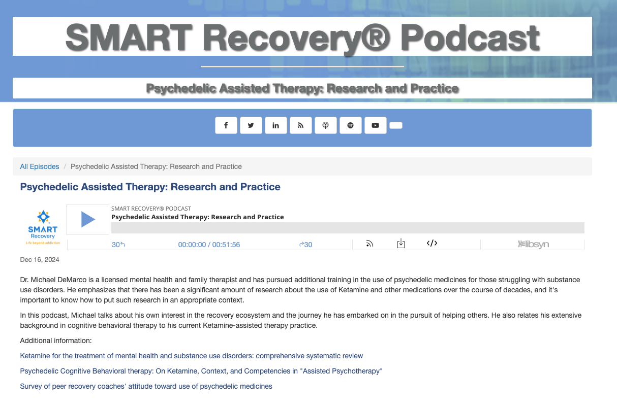 El Instituto Psicodélico de Salud Mental y Terapia Familiar, PC ofrece apoyo en salud mental psicodélica y aprendizaje para profesionales (prácticas, pasantías, prácticas externas, becas clínicas y no clínicas). El Instituto Psicodélico no es una institución, escuela o programa de formación que otorgue títulos. Ofrecemos desarrollo profesional a profesionales especializados en psicoterapia asistida por psicodélicos, específicamente ketamina, desde un enfoque de terapia cognitivo-conductual.