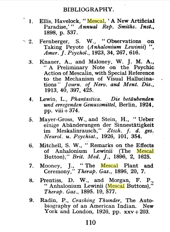 In 1897, after reading Mitchell’s article, the German chemist Arthur Heffter made a series of self-experiments with peyote extracts and isolated the compound that was responsible for the visual hallucinations: an alkaloid that he named “meskalin.”