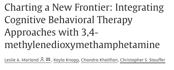 2025: "Clinical psychology has seen a resurgence of interest in the use of psychedelic-assisted therapy (PAT) for the treatment of a range of mental health diagnoses in the past several years. Although PAT research outcomes are promising, many questions remain unanswered, including identifying the most effective approaches to integrating psychedelics with existing cognitive behavioral therapies (CBTs) for different indications, populations, and settings. This special feature highlights cutting-edge research on the integration of psychedelics with several established CBTs, including Acceptance and Commitment Therapy, Prolonged Exposure, and Cognitive-Behavioral Conjoint Therapy. We focus primarily on 3,4-methylenedioxymethamphetamine (MDMA), an agent that has shown promise in having unique synergy with the psychotherapeutic mechanisms of change in many of our current CBT approaches. The authors aim to explore this potential synergy, including how psychedelics may enhance CBTs as well as the role of CBTs in facilitating the long-term integration of psychedelic-driven changes."